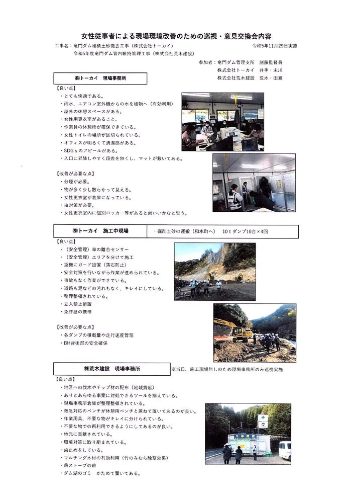 令和5年11月29日 竜門ダム管内で女性従事者による現場パトロールをおこないました。