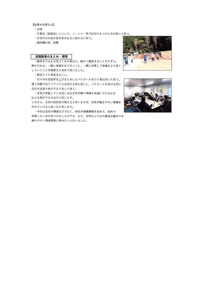 そこで女性従事者もより良い現場環境で業務に従事できるよう、現場巡視・意見交換会を
