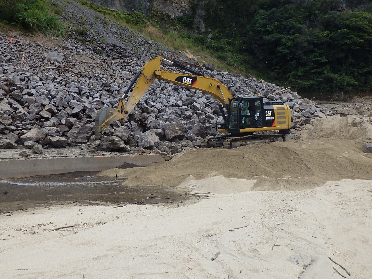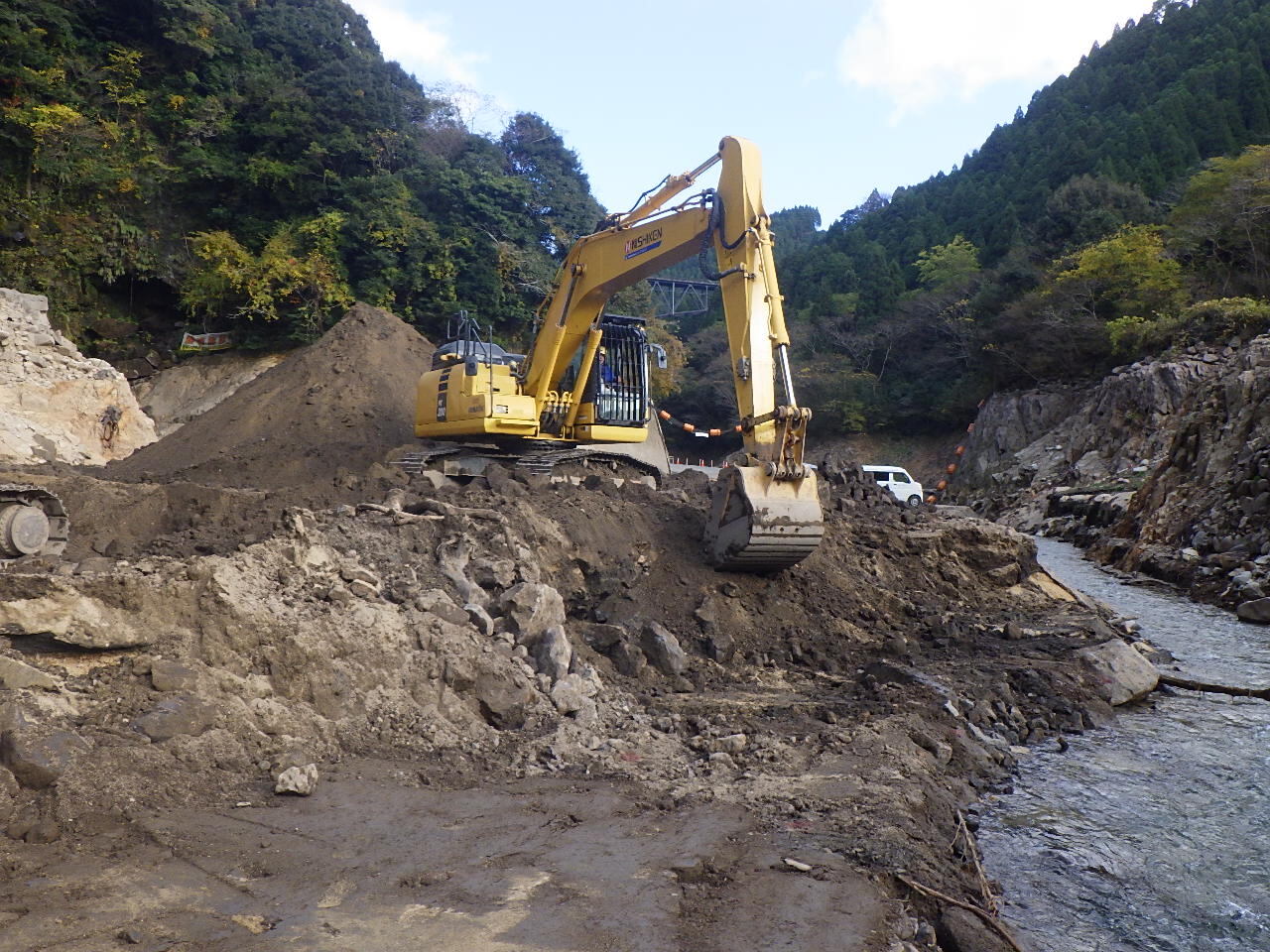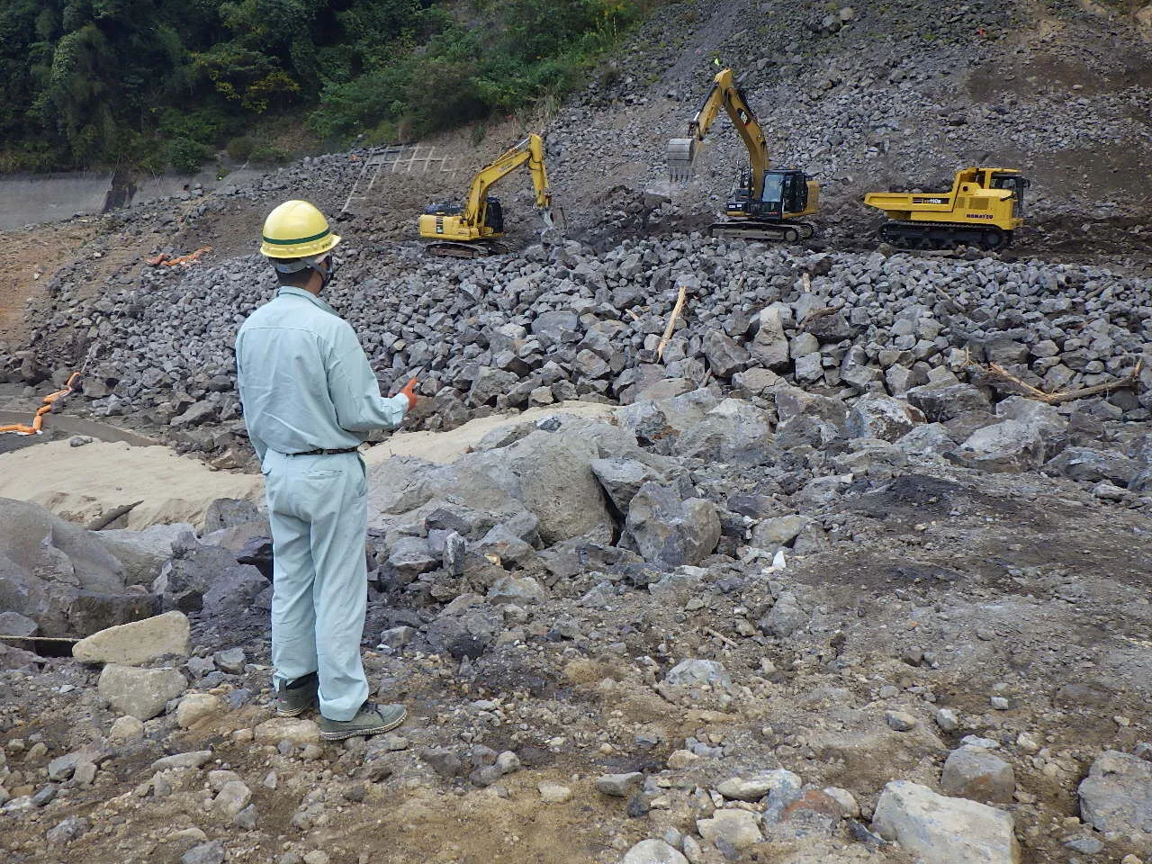 工事概要:岩塊・玉石掘削 2,517m3 転石破砕 2,517m3 土砂掘削 3,526m3 土砂等運搬 6,043m3 仮設工 一式