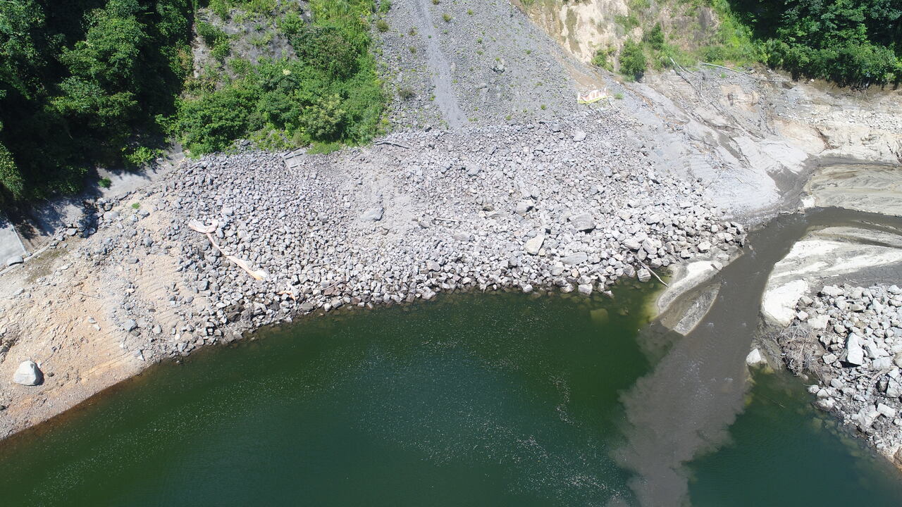 本工事は、当初浚渫工事であったが竜門ダムの貯水減少により土工事に変更